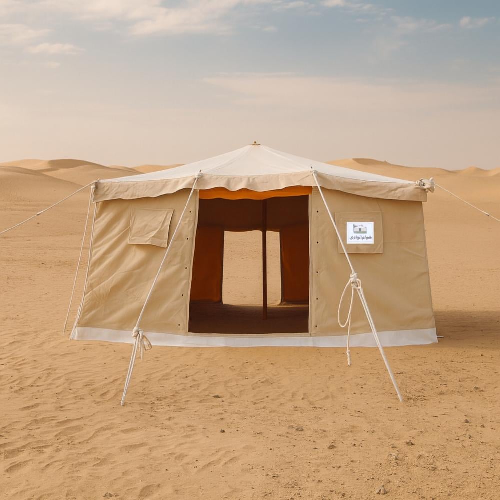 خيمة الوادي خيار مثالي للبر والرحلات، مصنوعة من 3 طبقات متينة تتحمل المطر والهواء، ومعها ضمان سنة ضد تهريب الموية, تصميم عملي وقوي يناسب طلعات البر والمكشات.